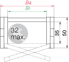Bemærk venligst: Der skal tilføjes 31 mm til den ydre bredde af kæden for bredden af de to glidesko!