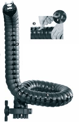 kædeled er mulig på længdeaksen. Det gør det muligt at føre kablerne