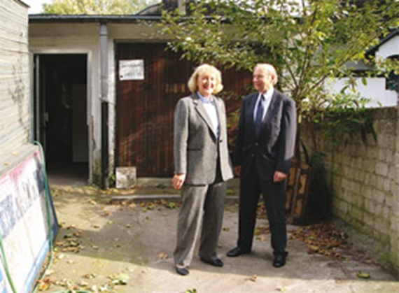 Virksomhedens grundlæggere Günter og Margret Blase foran deres “dobbeltgarage” i 1964.