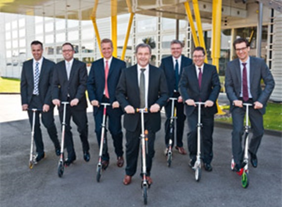 v. til h. : Tobias Vogel, direktør for Salg og markedsføring af lejer; Michael Blaß, vicepræsident, direktør for Salg og markedsføring af E-KædeSystemer; Frank Blase, administrerende direktør; Gerhard Baus, vicepræsident, direktør for forretningsenheden Polymerlejer; Artur Peplinski, vicepræsident, direktør for International koncernudvikling og markedsføring; Harald Nehring, vicepræsident, direktør for forretningsenheden E-KædeSystemer; Christoph Müller, vicepræsident, finans- og økonomidirektør