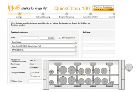 igus® præsenterede den første EnergiKæde fremstillet af plast for 43 år siden; i dag tilbyder virksomheden det største udvalg af plastkæder med det bredeste sortiment af fleksible kabler i verden. For at navigere i det store sortiment kan kunder bruge et online værktøj til nemt at vælge deres kæde med kabler og stik og selv beregne levetiden. I dag er igus® en systemleverandør inden for energiforsyning. readychain®-systemer tilbydes som færdige, kunde-monterede enheder.