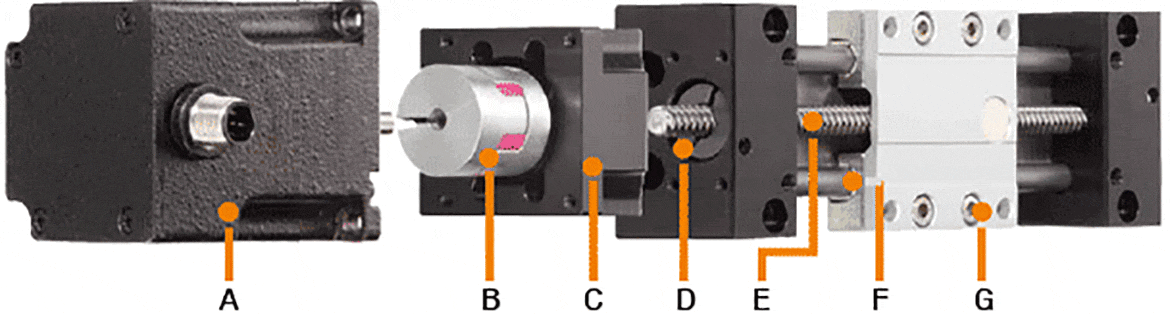 Afstandsstykke, motorflange og kobling på grund af det højre linearbord og motorkombinationer.