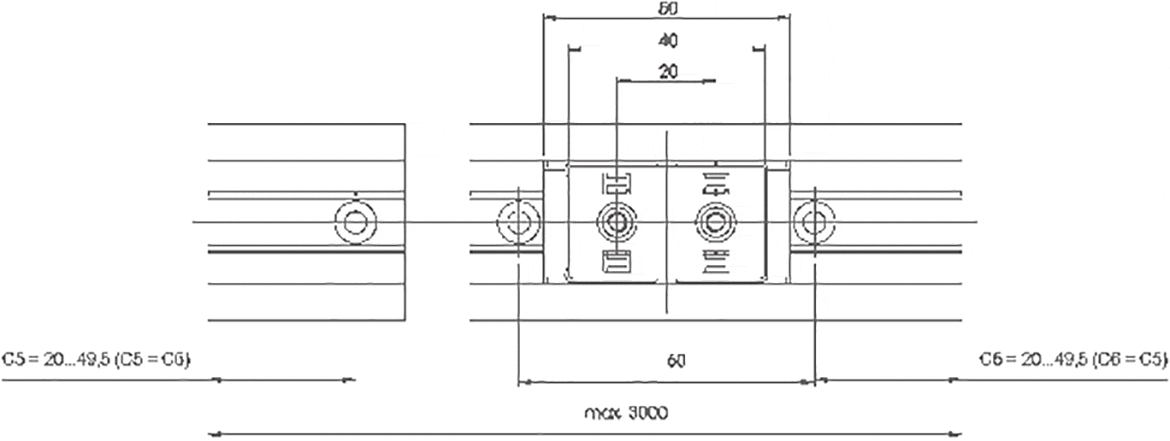 | Bestillingsnr. | Maks. skinnelængder | a | C4 | A3 | C5=C6 | h | h1 | K1* | ly | lz | Vægt af skinne | Pris / m | ||