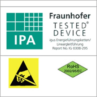 De testede drylin®-føringer er yderst velegnede til anvendelse i renrum. De følgende drylin®-føringer fra igus® blev testet: N40, W10, T25 og T30.