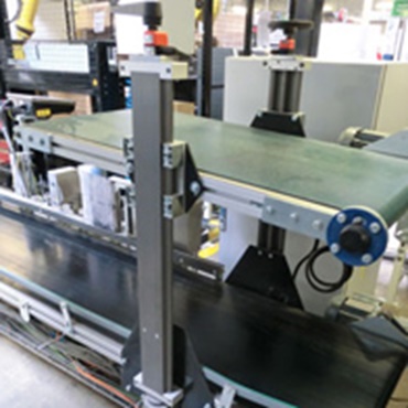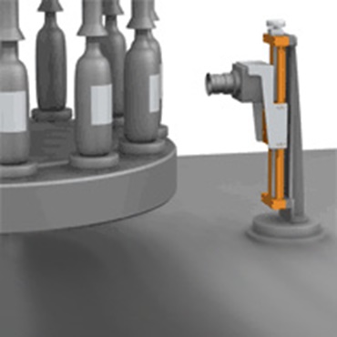 Anvendelse inden for glasindustrien til formatjustering på transportbånd til adskillelse af flasker.
