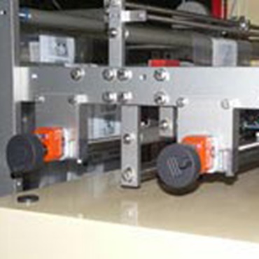 Formatjustering af sensorerne til filmkantdetektion og printmærkegenkendelse via drylin® SLW linearbordsløsning med positionsindikator og håndhjul (nem og gentagelig placering udefra)