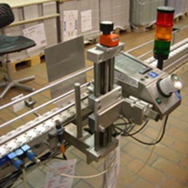 drylin®-spindelløftebordet med positionsindikator og håndhjul bruges i en kodeenhed til at mærke ost, fordi den er fri for smøremidler.