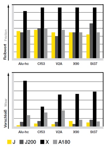 Omfattende laboratorietest gennem de seneste år har vist, at iglidur® J, J200, X og A180 er de ideelle materialer til de fleste lineære anvendelser på grund af deres positive egenskaber, hvad angår slid og friktion.